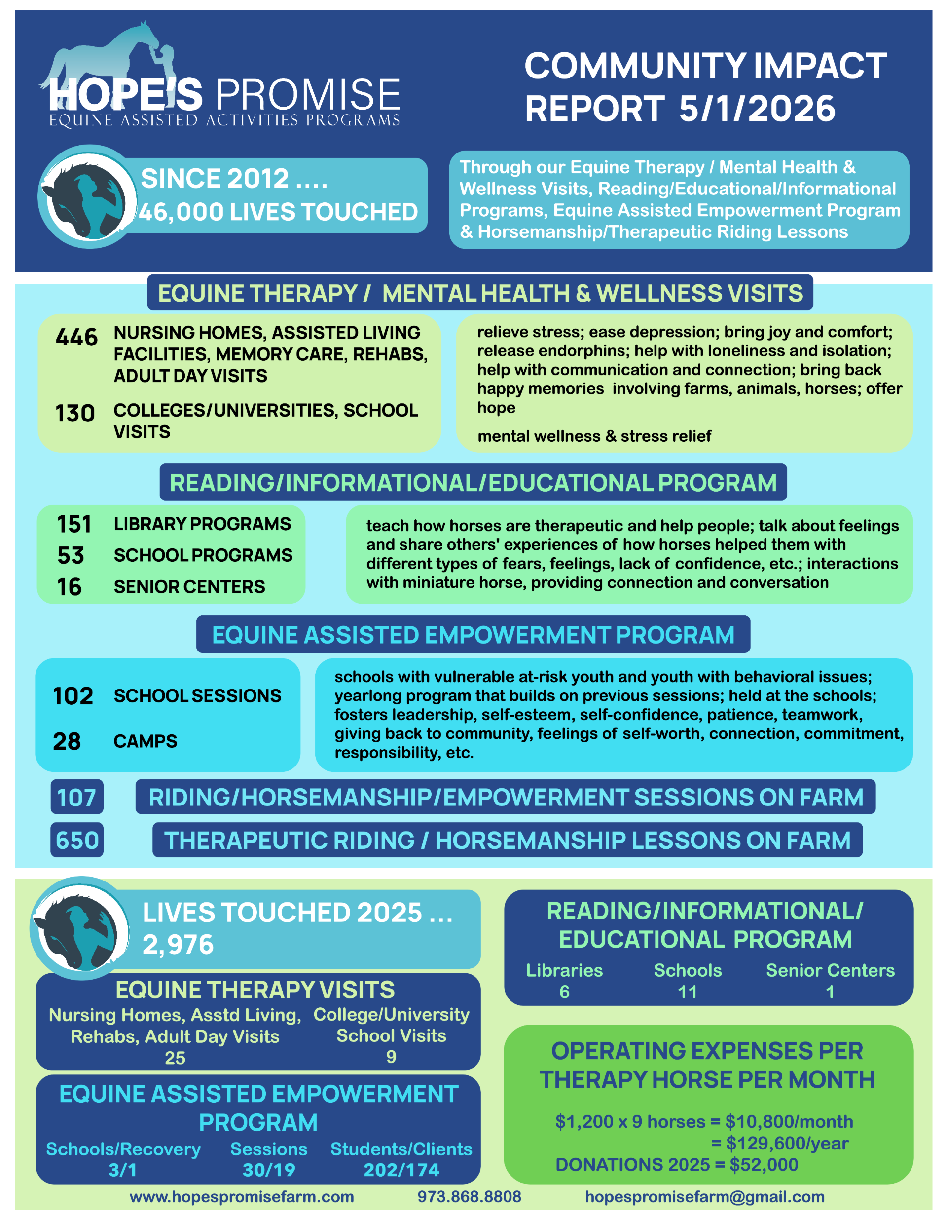 “To Hope’s Promise, Your mini therapy horses prove there is great power in being small. We are so thankful for all the joy you bring to our afterschool programs and summer camp. Keep doing great things! We love you!”